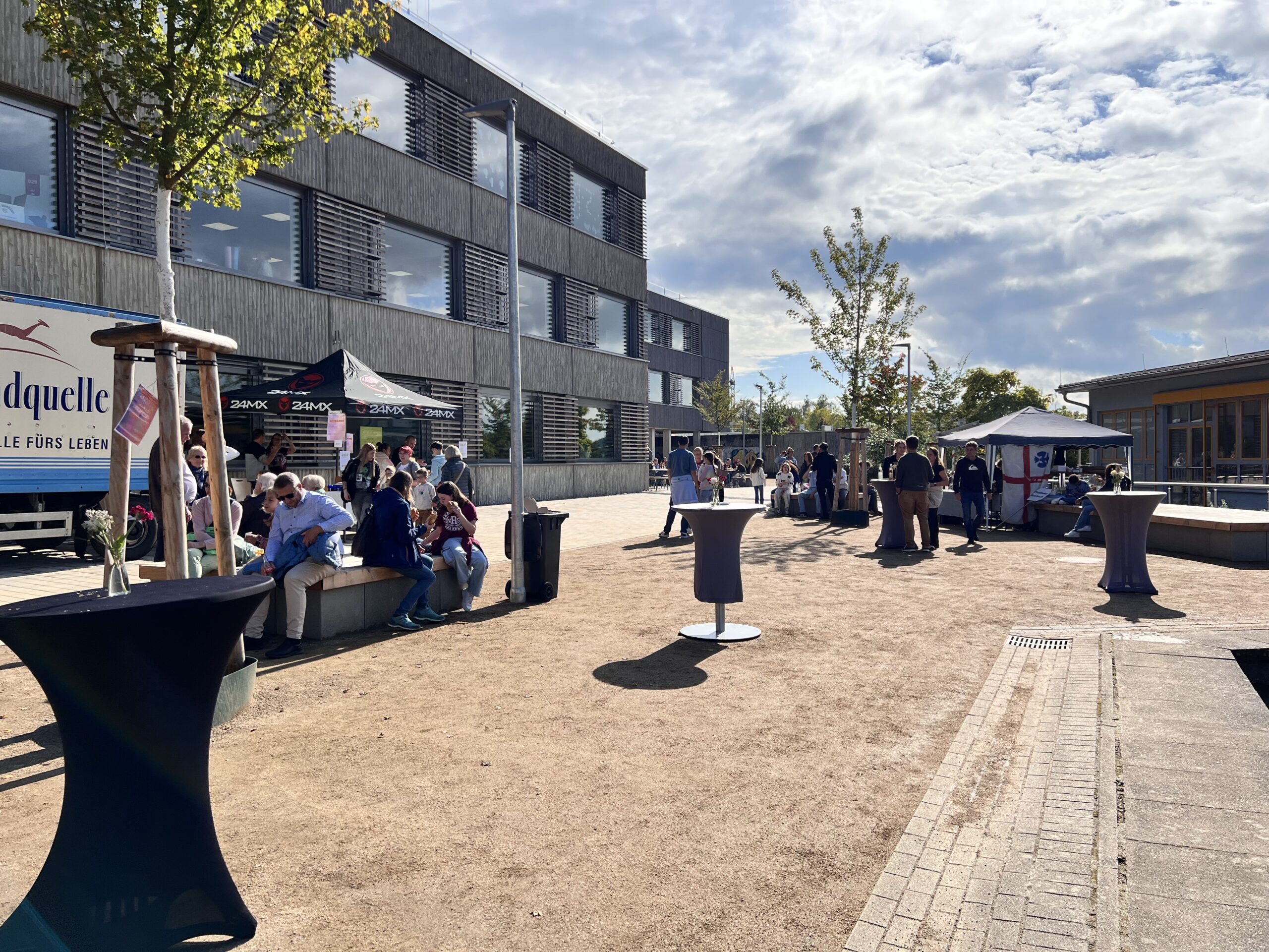 Das Schulfest bot den Besuchern zahlreiche spannende Aktionen in den Klassenzimmern sowie mitreißende Auftritte in der Aula und im Musiksaal. Die Verpflegung wurde vom Elternbeirat und Freundeskreis hervorragend organisiert. Über 100 Kuchen wurden von den Eltern gespendet und verkauft, während am Getränkestand engagierte Eltern dafür sorgten, dass alle mit kühlen Getränken versorgt wurden. Als die Sonne am Nachmittag herauskam, füllten fröhliche Menschen den Schulhof und die Bänke, was zur lebhaften und einladenden Atmosphäre des Festes beitrug.