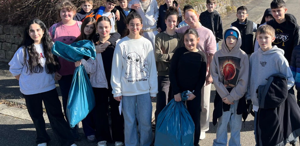 Die vier 6. Klassen der Kraichgau-Realschule haben am Freitag, dem 27.02.26, tatkräftig Müll rund um das Krankenhaus und in Sinsheim Ost gesammelt. Insgesamt 111 Schülerinnen und Schüler beteiligten sich gemeinsam mit ihren Lehrerinnen an der Aktion.