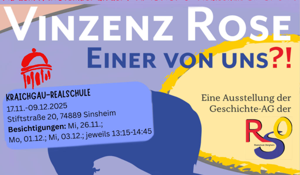 - Ausstellung an der KRS: Vinzenz Rose – Einer von uns?!Eine Ausstellung von Schüler*innen für Schüler*innen Die von der Geschichte-AG der Realschule Obrigheim erarbeitete Ausstellung…